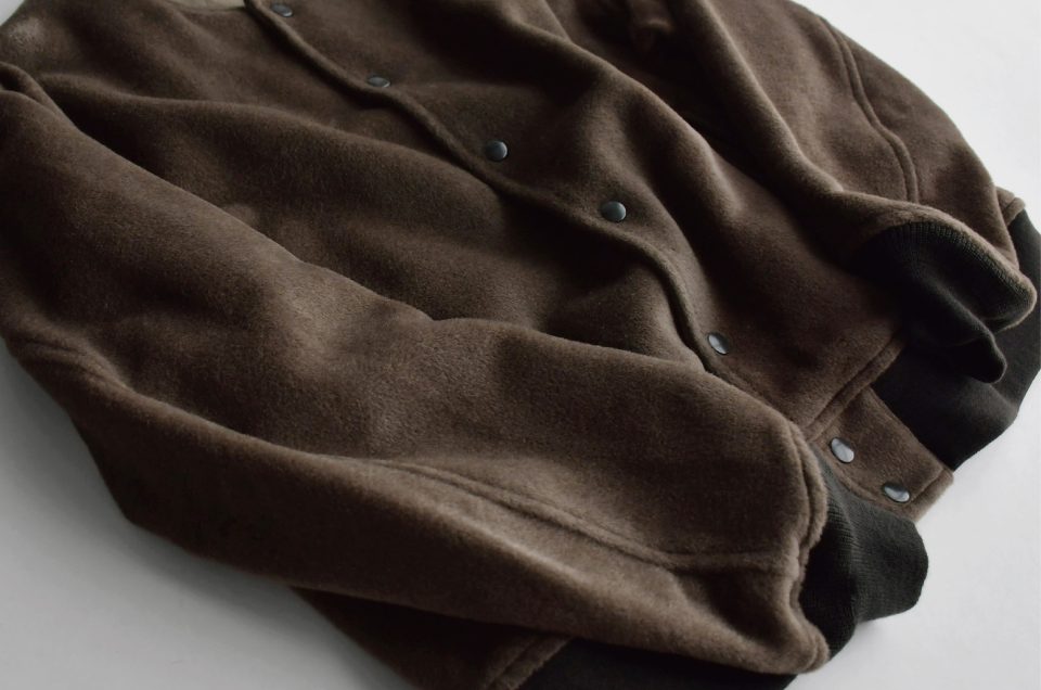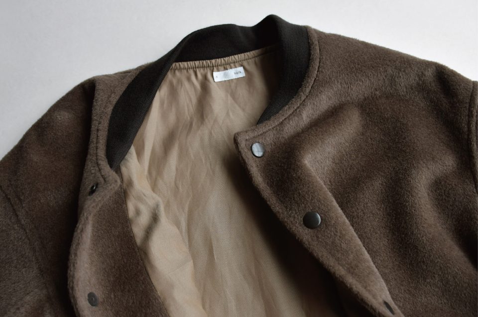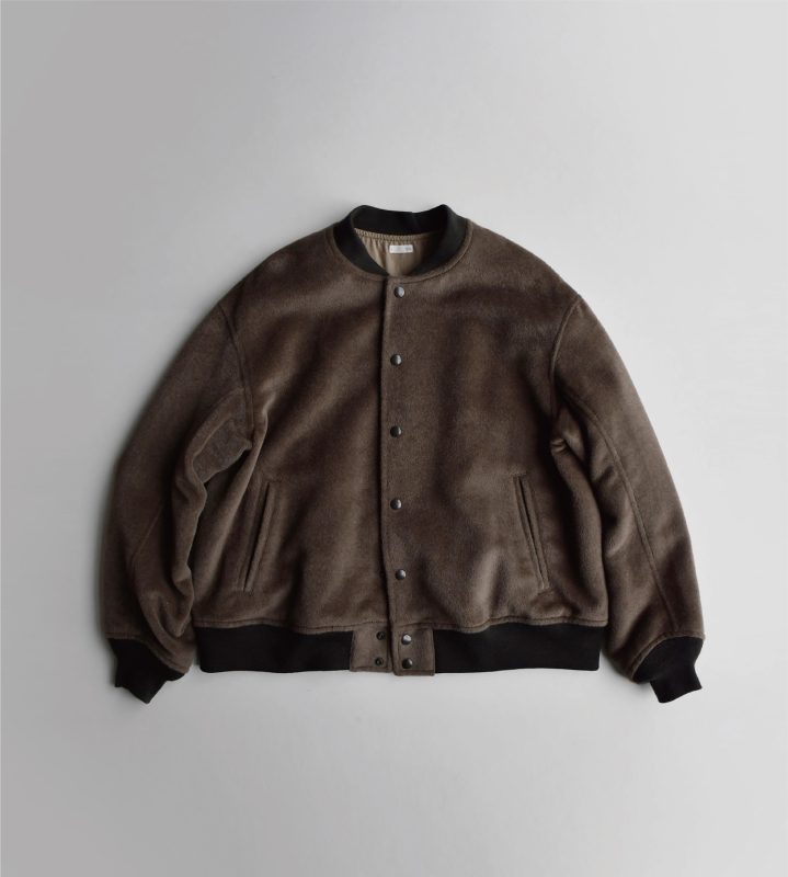 holk(ホーク)の展示会で素敵だね。と手に取ったのは、アルパカシャギーのバーシティジャケット。