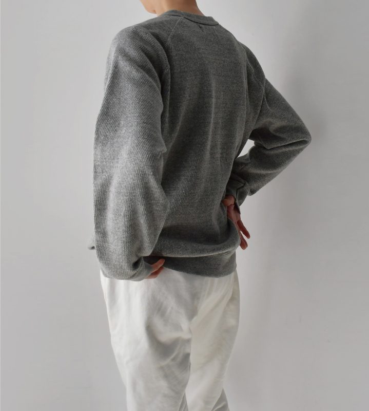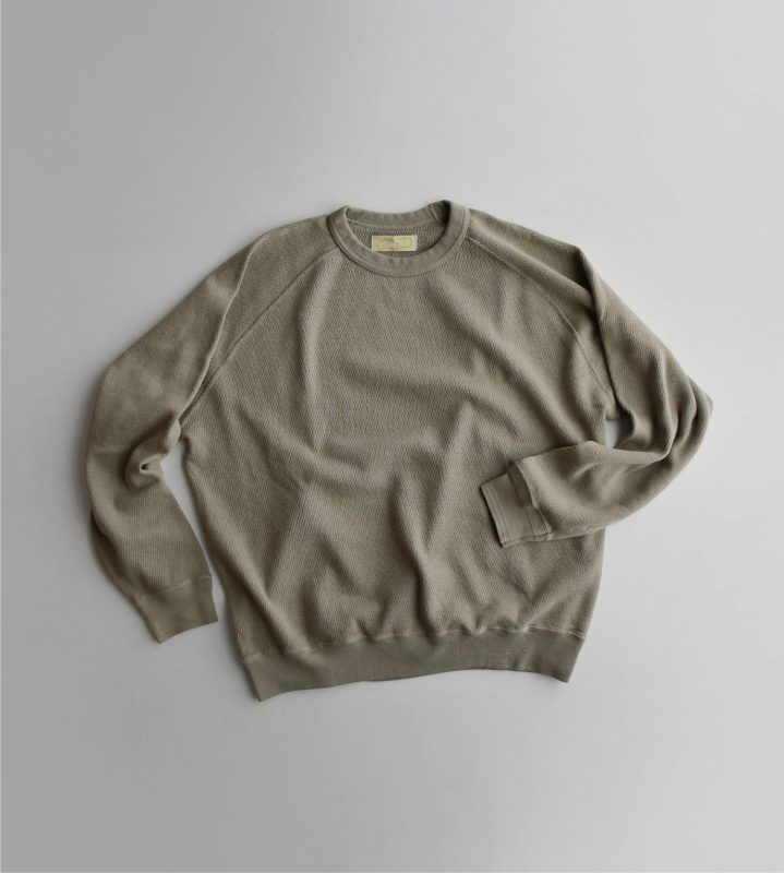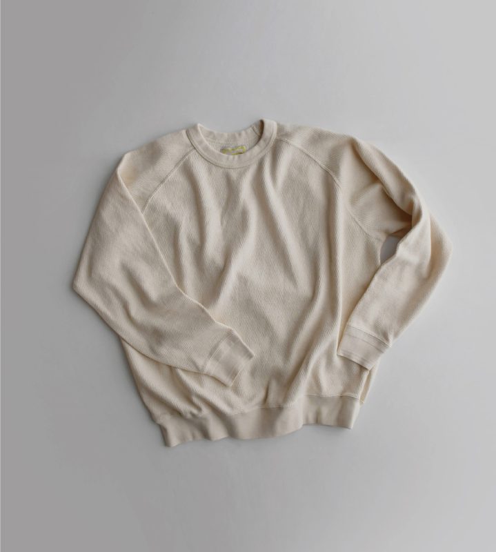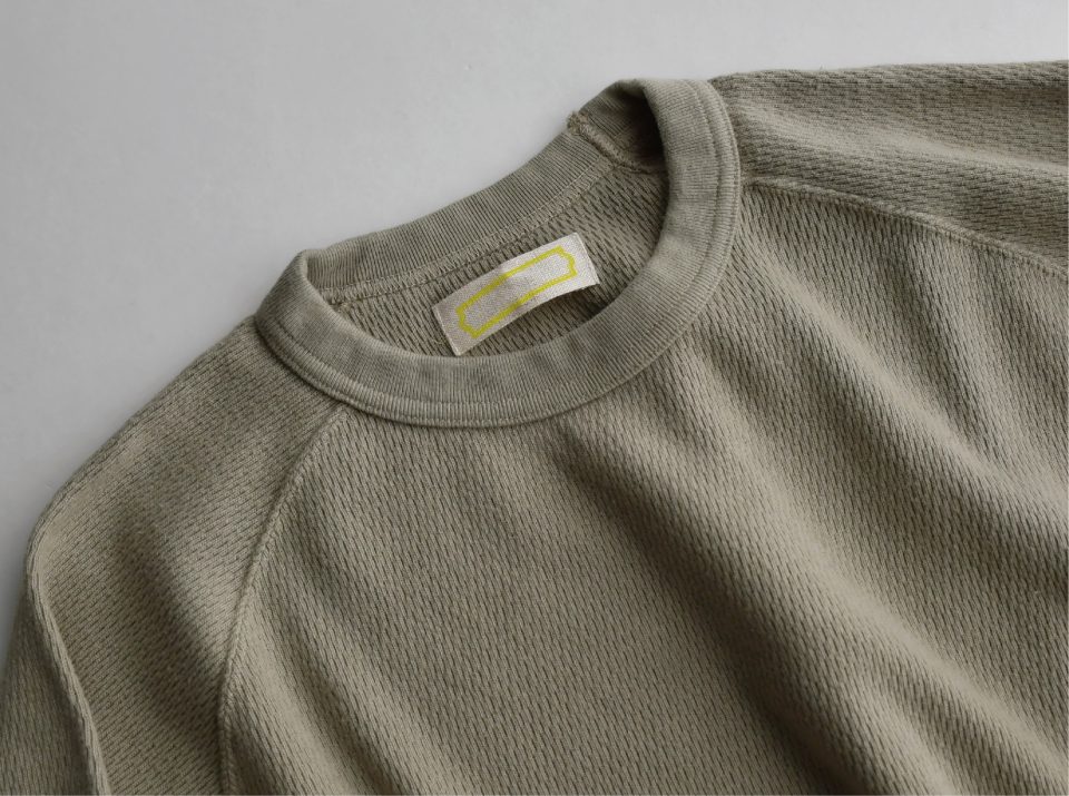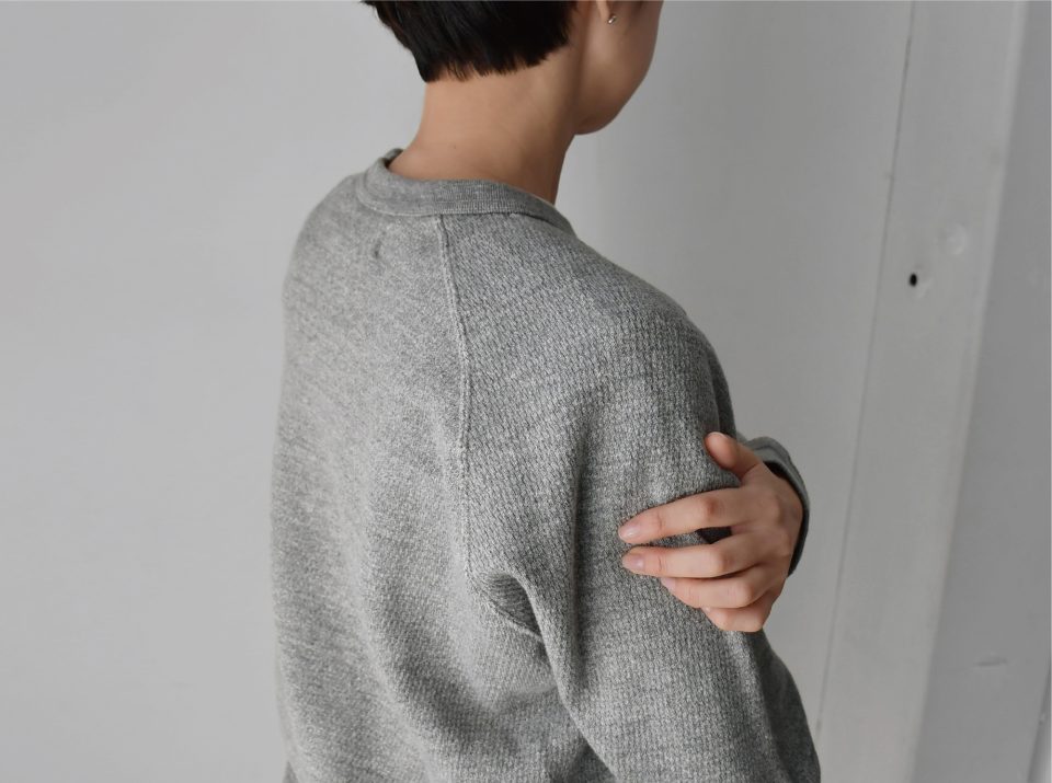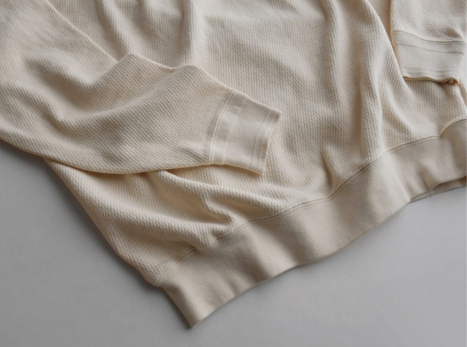 ニットのように柔らかく編み立てた凸凹感あるサーマル生地。