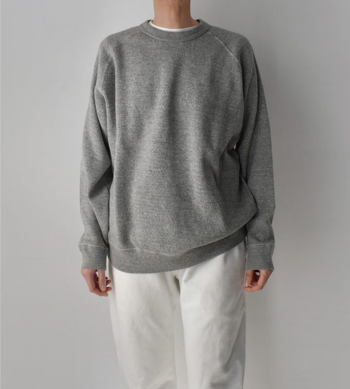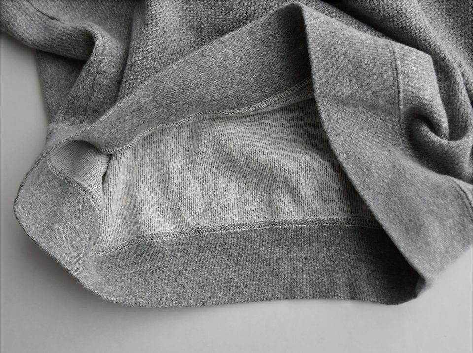もちっと感があり、ロンTとスウェットの中間くらいの厚みでしょうか。
