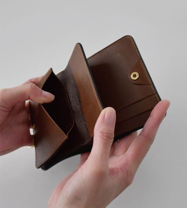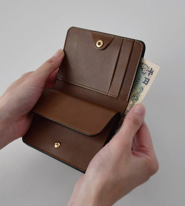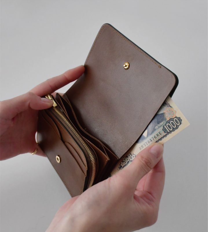 ショートウォレット同様、お札を畳まずサイドからの出し入れできるのがポイントです。