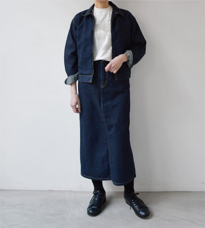 大人がリラックスして着ることのできるデニムスカートに仕立ています。