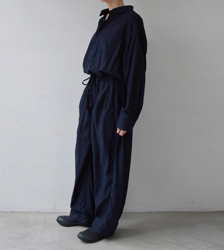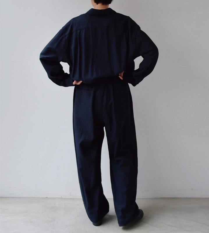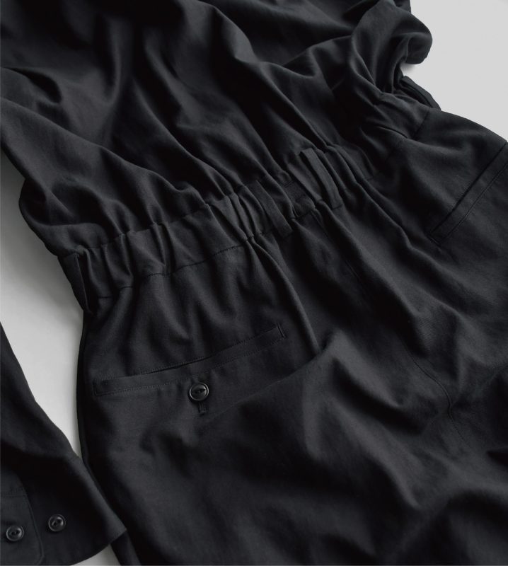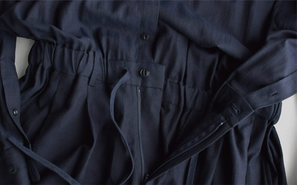 カジュアルな「つなぎ」ですが、生地の雰囲気の良さからドレス感があります。
