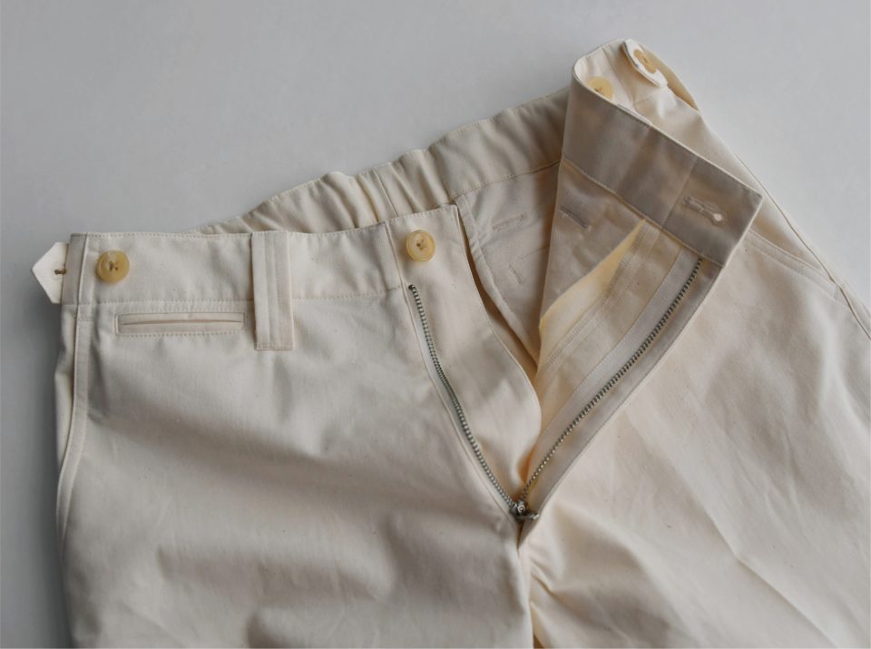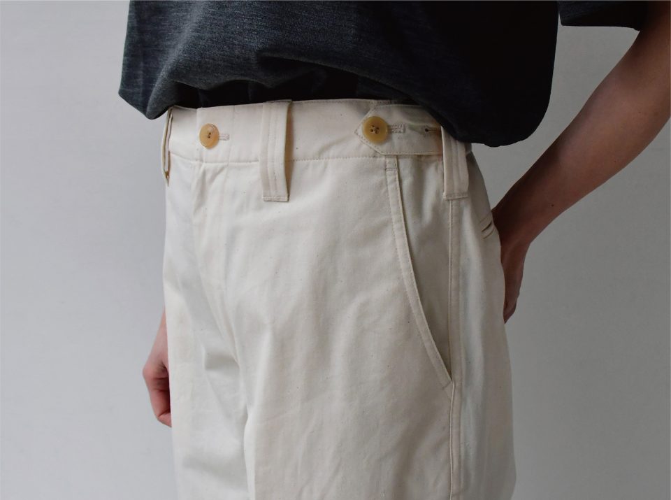 チノはベージュのイメージが強いと思いますが、holk(ホーク)のチノはエクリュ(生成り)。