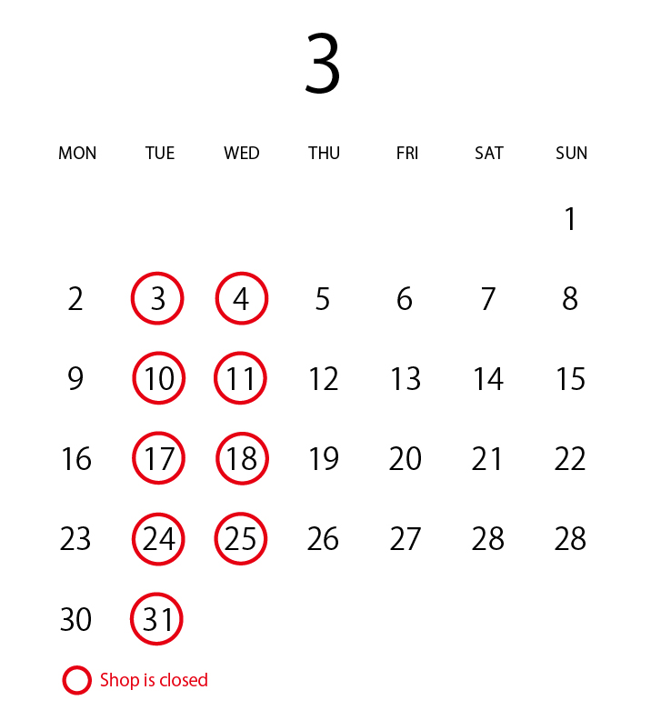 3月のカレンダーです。