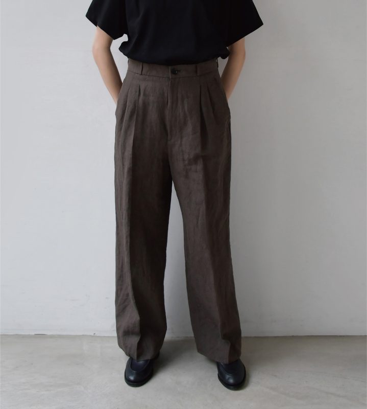 リネンパンツのナチュラル感を抑えた、すっきりと見える2タックシルエット。