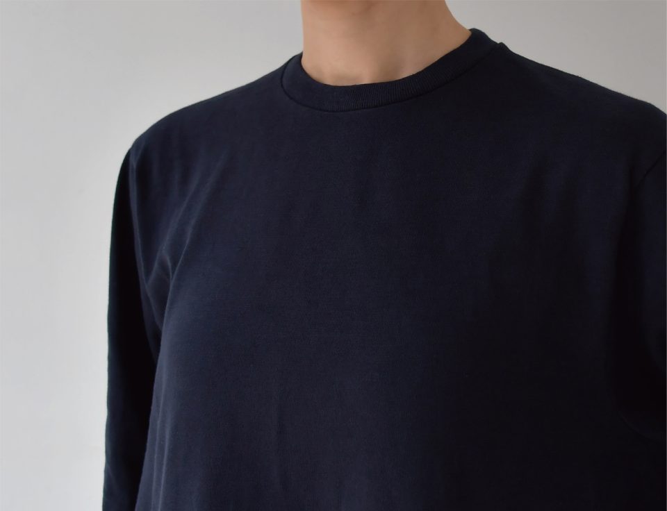 きゅっと詰まったネックに、Tシャツを長くしたようなストンとした形。