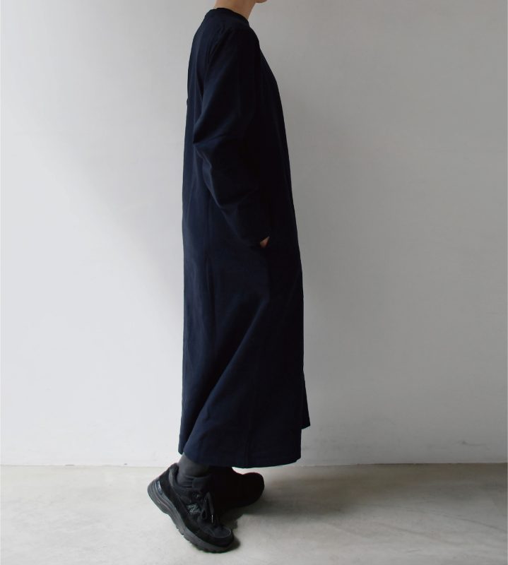 YAECA ロングスリーブTシャツドレス navy